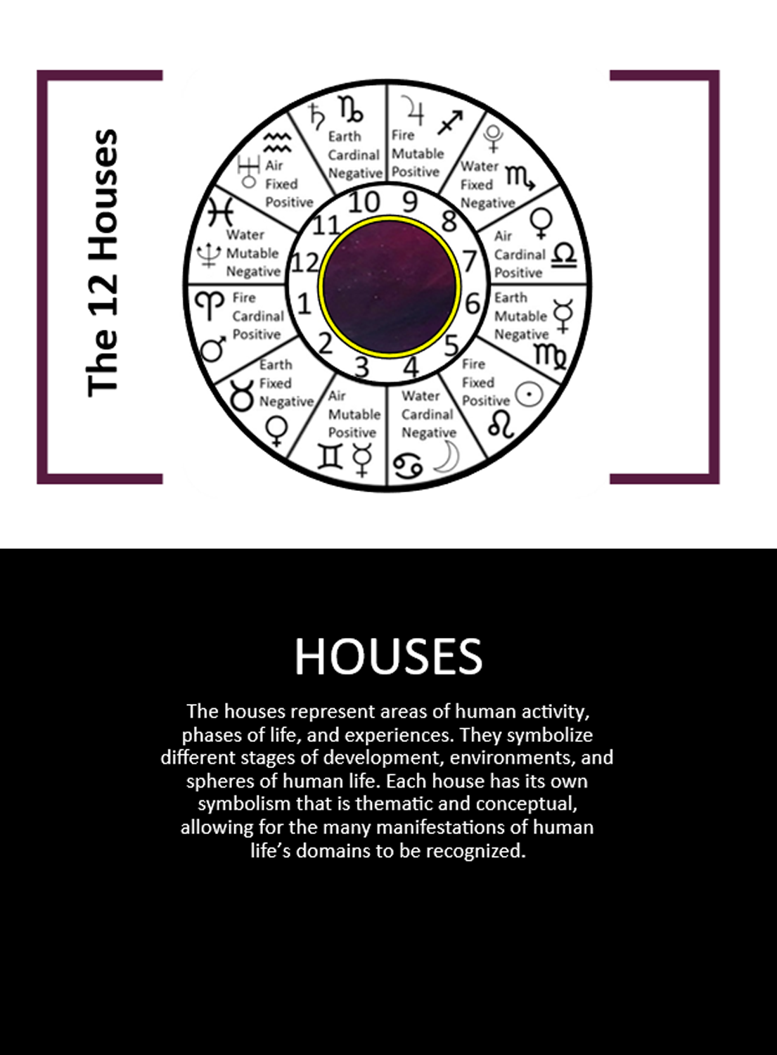 (This is a partial description of the houses that comes from a part of the Insight and Action Astrology Learning Cards.)