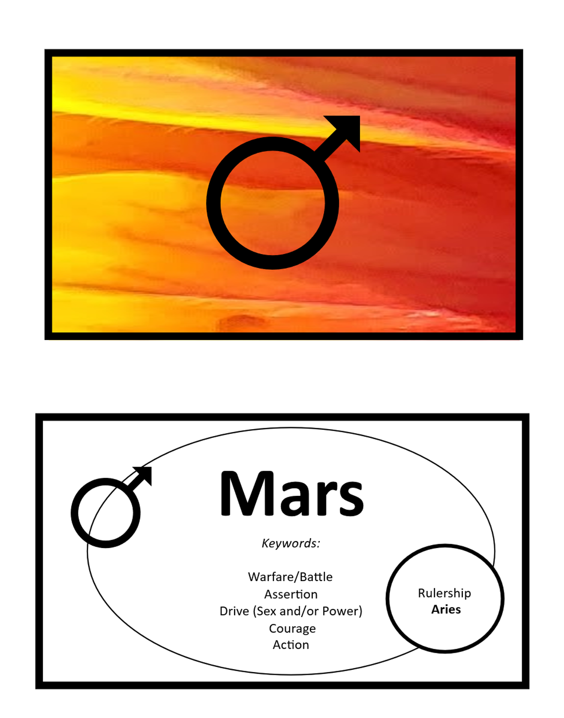 2. Pull out the Mars card and the house card from the Insight and Action Astrology Learning Card deck. If you do not yet have the learning cards, you can use a different resource you have for that information.
